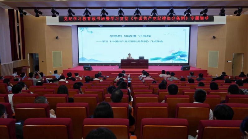 6月5日下午,學(xué)院舉辦黨紀(jì)學(xué)習(xí)教育讀書(shū)班暨學(xué)習(xí)貫徹新修訂的《中國(guó)共產(chǎn)黨紀(jì)律處分條例》專題輔導(dǎo)報(bào)告會(huì)。省紀(jì)委監(jiān)委駐省教育廳紀(jì)檢監(jiān)察組負(fù)責(zé)同志應(yīng)邀作《學(xué)條例 知敬畏 守底線》專題輔導(dǎo)報(bào)告,學(xué)院黨委書(shū)記陳宜大主持會(huì)議。黨委副書(shū)記、院長(zhǎng)陳錦輝,黨委委員、紀(jì)委書(shū)記張輝和全體副科級(jí)及以上干部150余人參加。