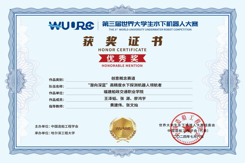 此次比賽匯聚了來自中俄等國的54支代表隊(duì)以線上線下的形式激烈角逐。我院學(xué)生王澤韜的作品《潛向深藍(lán)——高精度水下探測機(jī)器人領(lǐng)航者》(指導(dǎo)教師:黃建偉、張文燦)作為全國唯一一所職業(yè)院校參加大賽,并獲優(yōu)秀獎(jiǎng)。