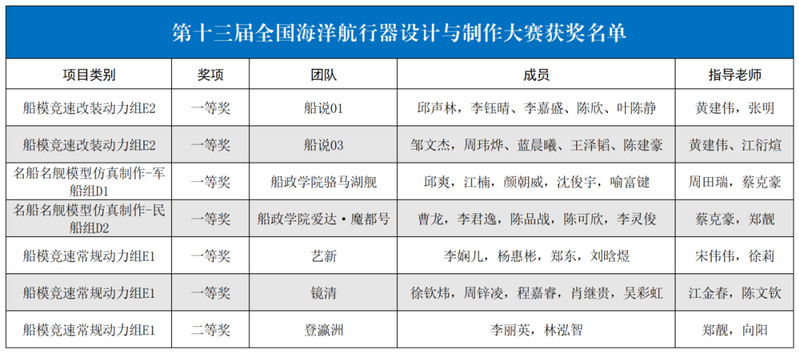 我院代表隊(duì)在新概念創(chuàng)意設(shè)計(jì)、設(shè)計(jì)與制作、艦船模型智能航行、名船名艦仿真制作、海洋知識競賽等多個(gè)賽道中斬獲一等獎(jiǎng)6個(gè)、二等獎(jiǎng)1個(gè),成績斐然!