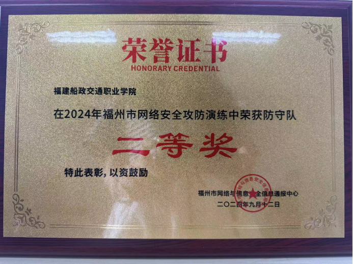 近日,福州市公安局網(wǎng)絡(luò)安全保衛(wèi)支隊(duì)公布了2024年福州市網(wǎng)絡(luò)安全攻防演練獲獎(jiǎng)名單,我院榮獲防守方第四名(二等獎(jiǎng))。
