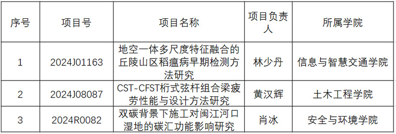 近日,從福建省科技廳獲悉,我院林少丹、黃漢輝、肖冰等3位老師主持申報(bào)的項(xiàng)目獲2024年度福建省科技計(jì)劃項(xiàng)目立項(xiàng),分別獲批項(xiàng)目涵蓋省自然科學(xué)基金面上項(xiàng)目、創(chuàng)青項(xiàng)目及省創(chuàng)新戰(zhàn)略研究科技計(jì)劃項(xiàng)目。