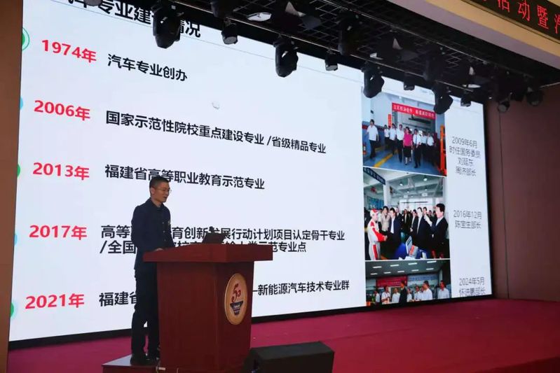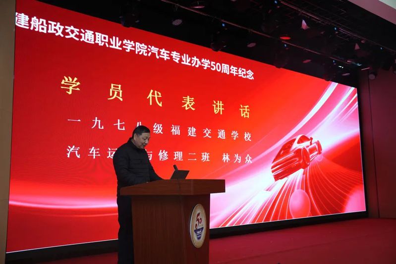 學(xué)院原黨委副書記陳炎生講述了他身為76級(jí)汽車專業(yè)校友,在校學(xué)習(xí)工作四十余年的崢嶸歲月,見證了學(xué)院和汽車專業(yè)成長與發(fā)展。他表示,五十年來,汽車專業(yè)從創(chuàng)立之初的艱辛探索,到如今形成以新能源汽車技術(shù)為核心的專業(yè)群,始終緊扣地方經(jīng)濟(jì)與產(chǎn)業(yè)需求,與時(shí)代并肩而行,培育出大批高素質(zhì)技術(shù)技能人才。在未來,校友們將與母校休戚與共,砥礪前行,再創(chuàng)輝煌。