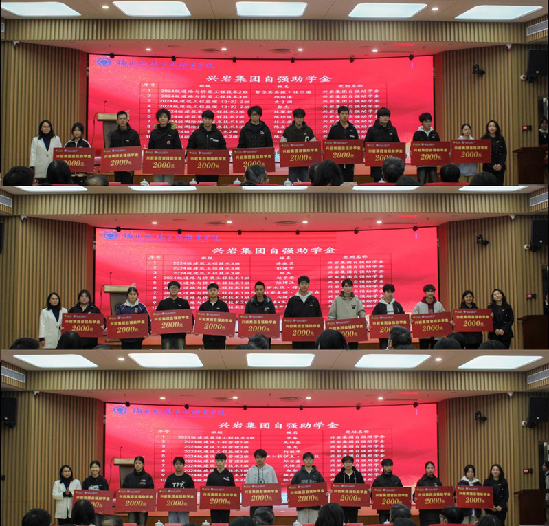 興巖集團(tuán)獎助學(xué)金,是福建省興巖建設(shè)集團(tuán)有限公司于2023年在我院捐資100萬元設(shè)立,旨在獎勵和資助我院土木工程學(xué)院德智體美勞全面發(fā)展的優(yōu)秀學(xué)生及品學(xué)兼優(yōu)、家庭經(jīng)濟(jì)困難學(xué)生,每年獎助40名同學(xué)。本次是興巖集團(tuán)獎助學(xué)金第二次發(fā)放,院企將以此為契機(jī),繼續(xù)在技術(shù)服務(wù)、科學(xué)研究、人才培養(yǎng)等方面開展系列合作,推動產(chǎn)教深度融合,協(xié)同創(chuàng)新,實現(xiàn)互利共贏。