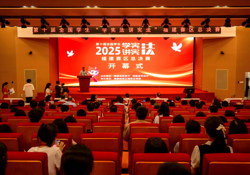 9月27日-28日,第十屆全國(guó)學(xué)生“學(xué)憲法講憲法”福建賽區(qū)總決賽在我院召開(kāi)。本次比賽由福建省教育廳、福建省司法廳主辦,福建船政交通職業(yè)學(xué)院承辦。福建省教育廳二級(jí)巡視員王越忠出席并講話,福建省司法廳副廳長(zhǎng)官文勝,福建船政交通職業(yè)學(xué)院黨委書(shū)記陳宜大、院長(zhǎng)陳群,省教育廳政策法規(guī)與行政審批處處長(zhǎng)王飛,省司法廳普法與依法治理處三級(jí)調(diào)研員李志強(qiáng)出席開(kāi)幕式。全省各地市教育局分管法治工作的副局長(zhǎng)、法規(guī)科負(fù)責(zé)人,以及入圍總決賽的250多名大中小學(xué)生選手與指導(dǎo)老師參加了本次活動(dòng)。