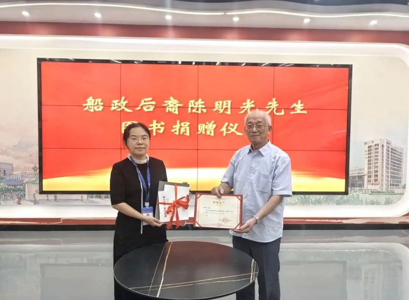 陳明光先生與船政淵源深厚,此次到校捐贈(zèng)了個(gè)人收藏的船政歷史圖書,內(nèi)容涉及抗戰(zhàn)船政人物、福州抗日志士等。他希望以書為橋,讓船政精神在年輕一代中延續(xù)。
