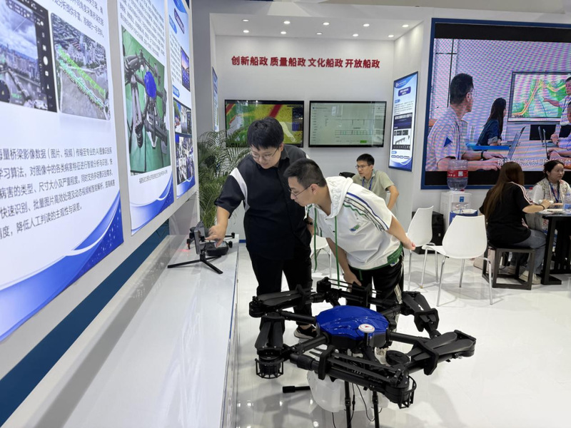 我院受邀參展并在主賓館設(shè)立展區(qū),重點展示了一系列兼具技術(shù)實力與應(yīng)用價值的成果,包括傳承船政文化的趕繒船結(jié)構(gòu)復(fù)原模型,聚焦智能裝備領(lǐng)域的 AIS 交通流分析系統(tǒng)、Ener16p 農(nóng)業(yè)植保無人機(jī)、無人機(jī)協(xié)同指揮系統(tǒng)、橋梁無人機(jī)巡檢及AI 病害識別系統(tǒng)等,豐富多元的展品吸引了眾多參會觀眾駐足咨詢、互動體驗并拍照記錄。