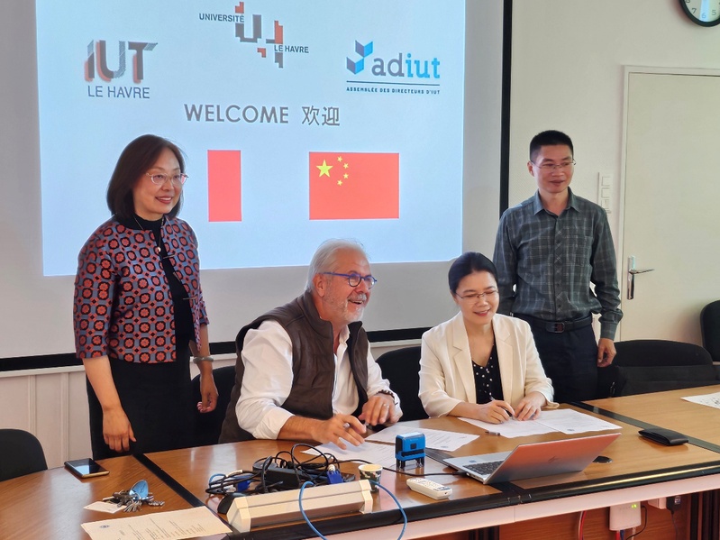 代表團(tuán)與諾曼底勒阿弗爾大學(xué)校長(zhǎng)佩德羅·拉格什·多斯桑托斯Pedro Lages dos Santos及國(guó)際發(fā)展部負(fù)責(zé)人蒂埃里·塔貝利翁Thierry TABELLION等舉行會(huì)談,雙方就師生互訪、教科研合作,特別在港口與海洋產(chǎn)業(yè)人才培養(yǎng)合作方面達(dá)成共識(shí),并簽署校際合作備忘錄。