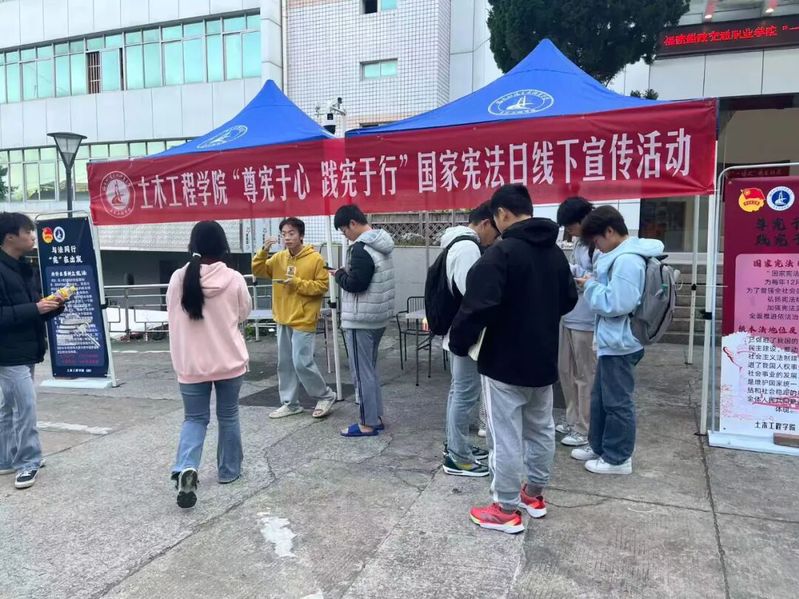 學(xué)院積極拓展宣傳教育渠道,推動憲法學(xué)習(xí)從課堂走向生活、從文本走向?qū)嵺`。土木工程學(xué)院走進(jìn)福航園學(xué)生社區(qū),開展“尊憲于心,踐憲于行”主題宣傳活動,志愿者結(jié)合學(xué)生生活實(shí)際,系統(tǒng)解讀憲法中關(guān)于公民權(quán)利保障的核心條款,引導(dǎo)同學(xué)們理解如何運(yùn)用法律武器維護(hù)自身合法權(quán)益,樹立“尊重知識、保護(hù)創(chuàng)新”的法治觀念。此外,學(xué)院還常態(tài)化舉辦法律咨詢沙龍,為師生提供面對面的法律咨詢服務(wù),將普法教育融入日常。