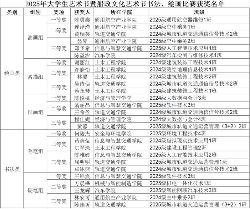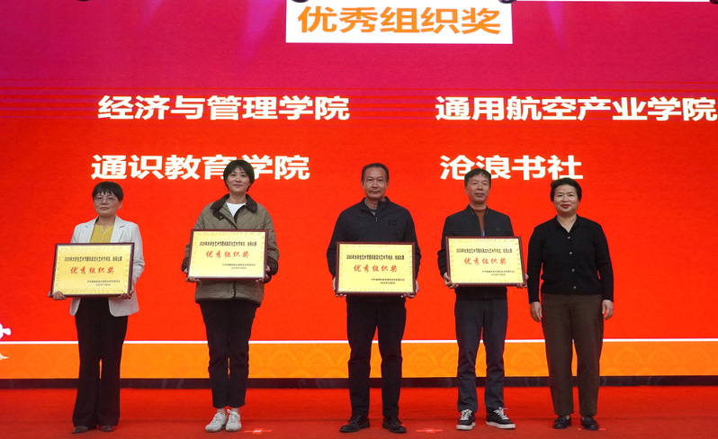 頒獎會上,還為獲得油畫、素描、國畫、毛筆、硬筆五個組別的一、二、三等獎的27名學生頒發(fā)獲獎證書,并授予經(jīng)濟與管理學院、通用航空產(chǎn)業(yè)學院、通識教育學院、滄浪書社“優(yōu)秀組織獎”。
