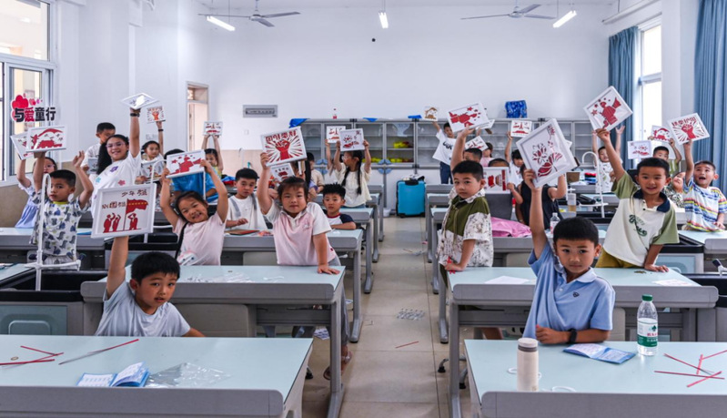 在紅色博史課堂上,英雄故事與船政歷史交相輝映,互動(dòng)分享中萌發(fā)愛國種子;在藍(lán)色致知課堂里,3D 打印筆、水果電池等趣味實(shí)驗(yàn)點(diǎn)亮科技?jí)粝?;在橙色育美課堂中,扎染、剪紙等沉浸式體驗(yàn)傳遞非遺溫度;在黃色動(dòng)能課堂上,互動(dòng)游戲讓孩子們?cè)趨f(xié)作中學(xué)會(huì)堅(jiān)守;在綠色匠心課堂里,茶園采茶實(shí)踐讓孩子們體悟責(zé)任擔(dān)當(dāng)。五彩課堂以多元形式,為鄉(xiāng)村孩子護(hù)航成長。