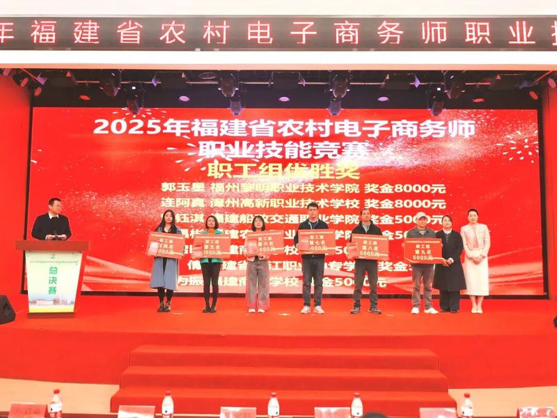 近日,由福建省商務(wù)廳、福建省人力資源和社會保障廳、福建省教育廳、福建省總工會、共青團(tuán)福建省委聯(lián)合主辦,福建船政交通職業(yè)學(xué)院承辦的2025年福建省農(nóng)村電子商務(wù)師職業(yè)技能競賽圓滿落幕。學(xué)院憑借周密的組織安排與高效的賽事服務(wù),保障了競賽全程嚴(yán)謹(jǐn)有序、公平公正,獲得主辦單位及各參賽隊伍的高度認(rèn)可。我院選派師生在比賽中表現(xiàn)突出,方思老師榮獲大賽第一名(金獎),黃鈺淇老師與學(xué)生陳偉鑫均獲得優(yōu)勝獎,實現(xiàn)了賽事承辦與競賽成績的雙重豐收。