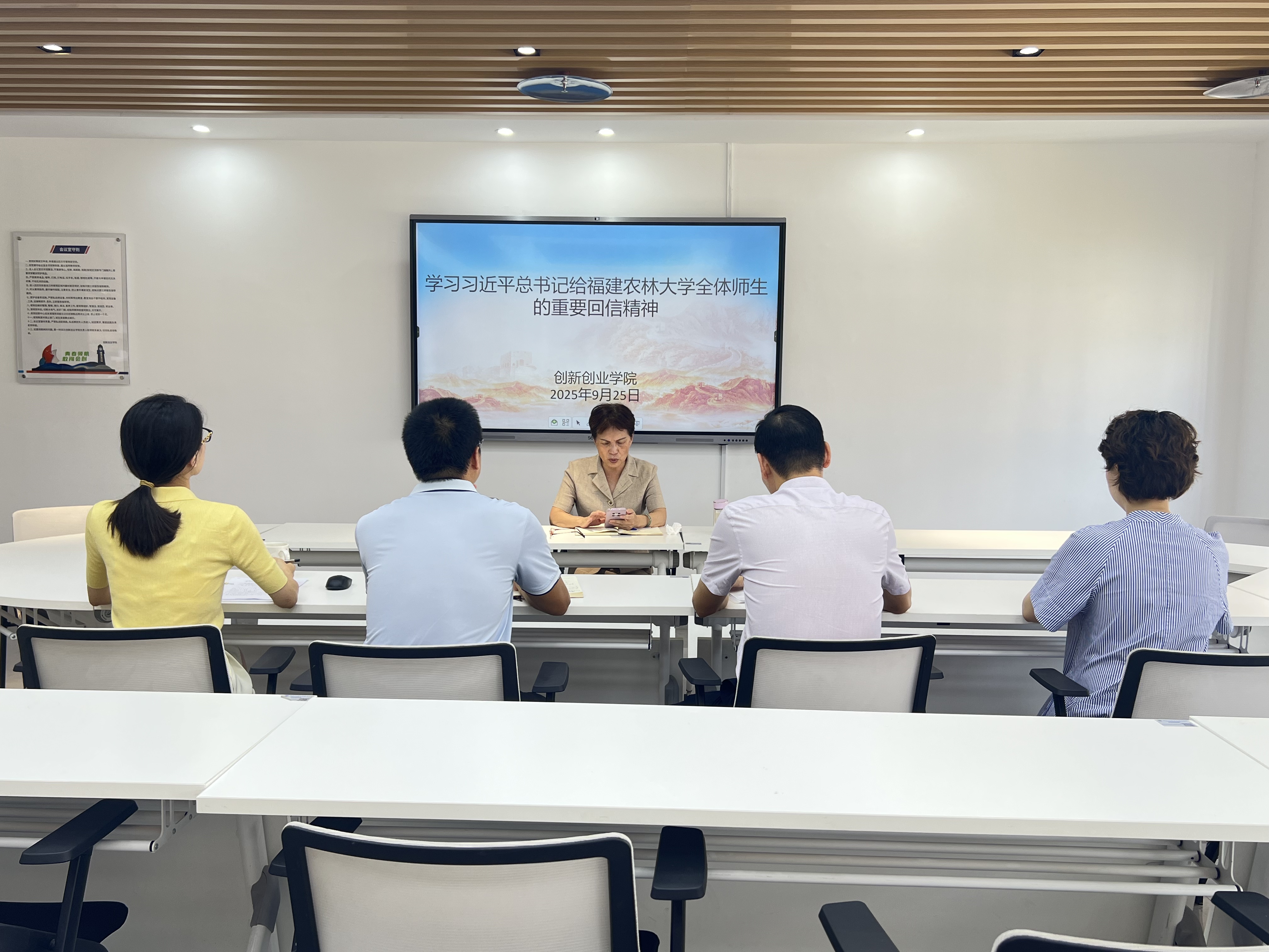 9月25日,創(chuàng)新創(chuàng)業(yè)學(xué)院組織全體教職工傳達(dá)學(xué)習(xí)習(xí)近平總書記給福建農(nóng)林大學(xué)全體師生回信精神,并強(qiáng)調(diào)全體教職工要認(rèn)真學(xué)習(xí)領(lǐng)會習(xí)近平總書記重要回信精神,以實際行動,不斷提升創(chuàng)新創(chuàng)業(yè)教育水平,培養(yǎng)更多具有創(chuàng)新精神和實踐能力的高素質(zhì)人才。