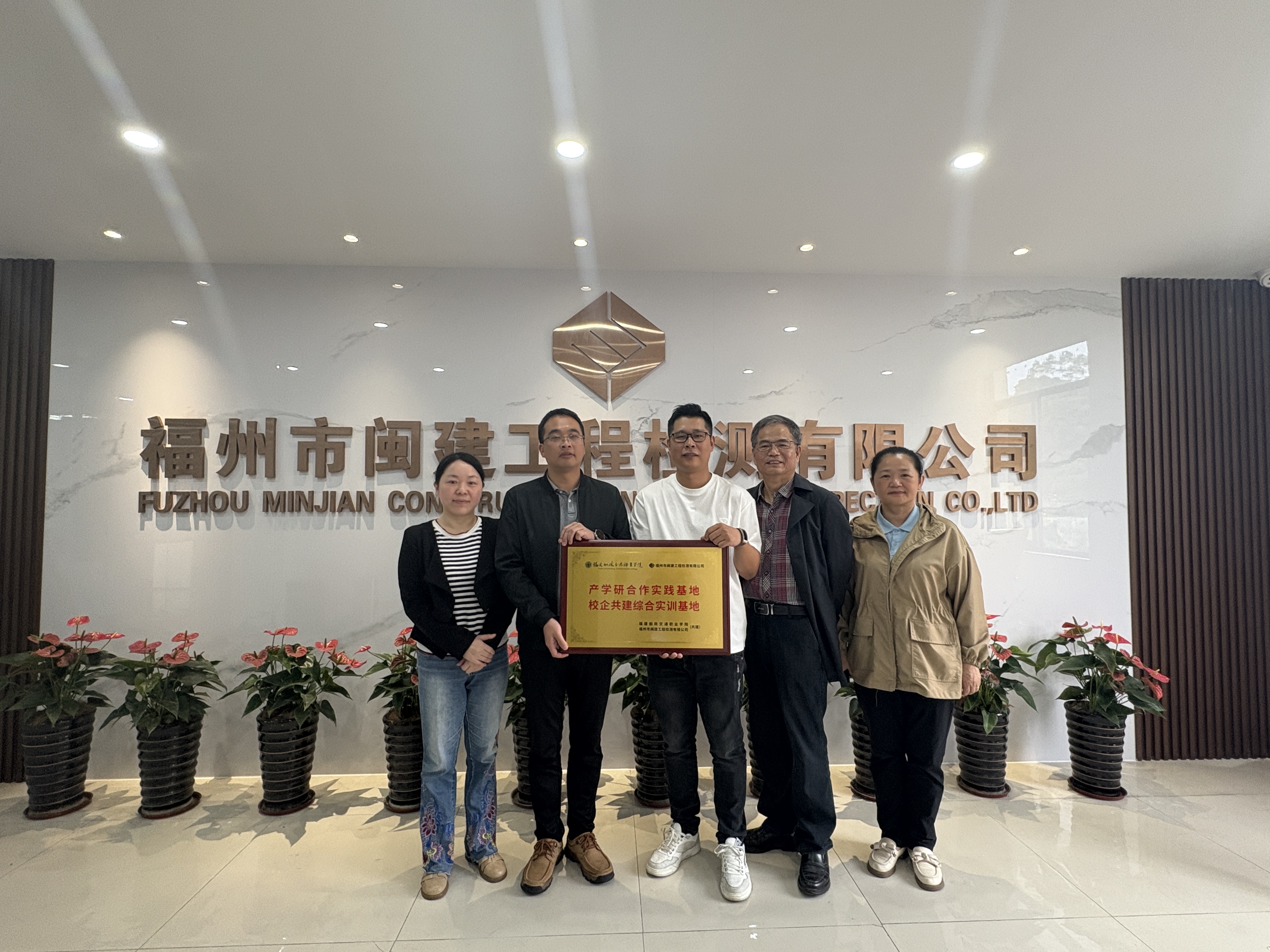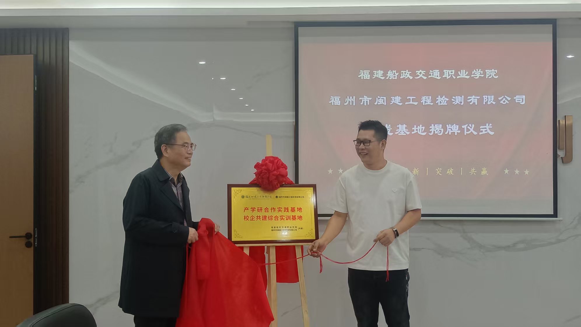 隨后,土木學院書記高杰與閩建檢測總經(jīng)理吳文岳共同為“校企共建綜合實訓基地”揭牌。