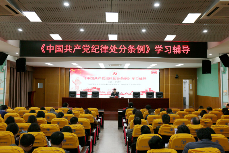 為鞏固學習成果,進一步掀起學習宣傳《條例》的熱潮,幫助廣大黨員深入學習新《條例》的核心要義及精神實質,12月7日上午,學院黨委、紀委邀請了省紀委駐省教育廳紀檢組常務副組長、省紀委教育工委副書記曾建宇同志來校,為學院領導、副科級以上干部、全體黨員、輔導員作專題學習輔導。