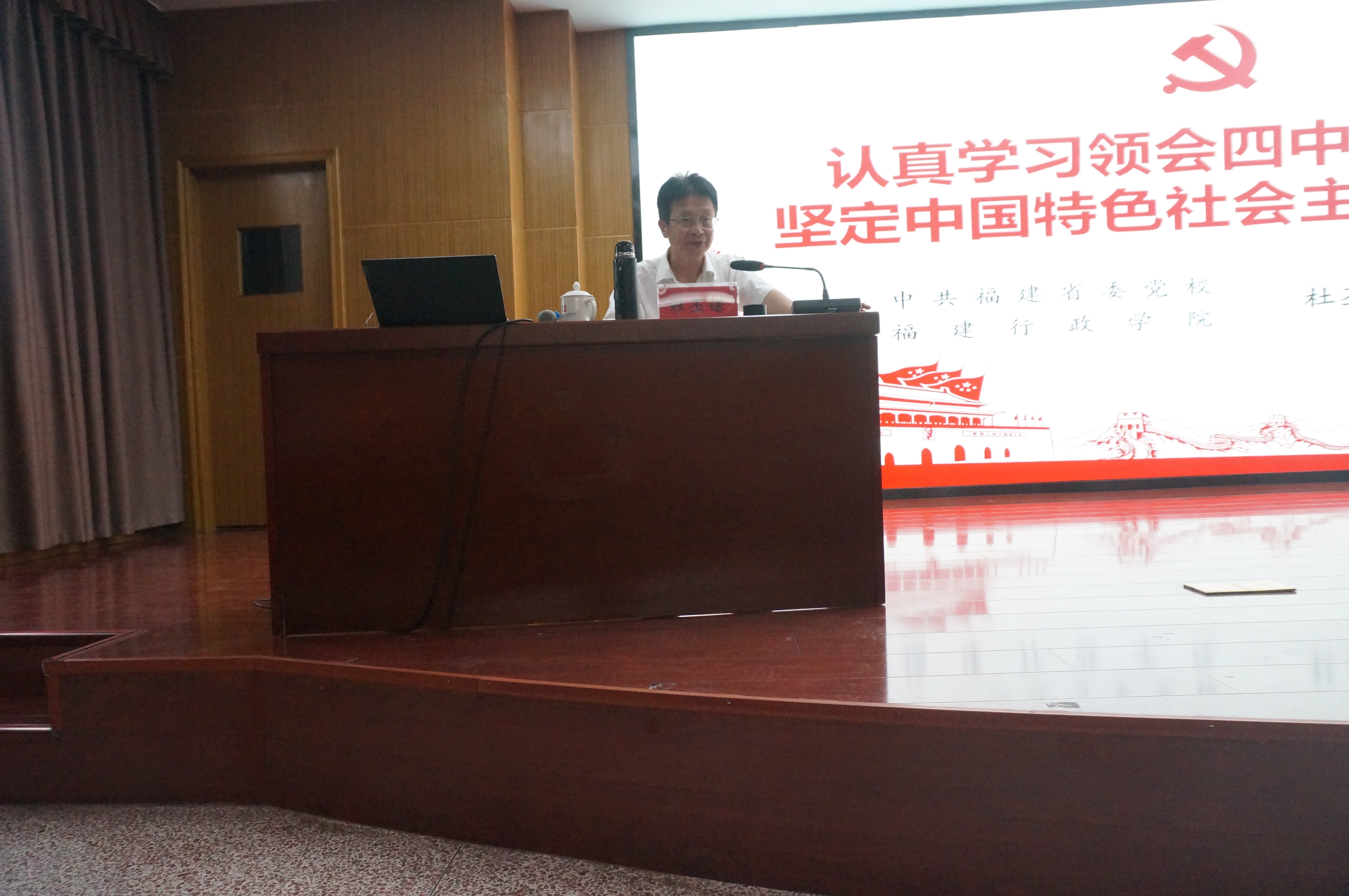 在集中學(xué)習(xí)階段,學(xué)院邀請(qǐng)了福建省委黨校副校長(zhǎng)(福建行政學(xué)院副院長(zhǎng))杜丕謙教授、楊小冬教授分別作了《認(rèn)真學(xué)習(xí)領(lǐng)會(huì)四中全會(huì)精神,堅(jiān)定中國(guó)特色社會(huì)主義制度自信》《開(kāi)辟“中國(guó)之治”的新境界——深入學(xué)習(xí)領(lǐng)會(huì)把握黨的十九屆四中全會(huì)精神》的專(zhuān)題講座,全面系統(tǒng)解讀了黨的十九屆四中全會(huì)精神內(nèi)涵、分享了制度體系建設(shè)的學(xué)習(xí)收獲和啟示,為現(xiàn)場(chǎng)的黨員干部學(xué)員帶來(lái)了理論的升華、思維的啟發(fā)和素養(yǎng)的提升。全體學(xué)員還加強(qiáng)了線下自學(xué),就如何學(xué)習(xí)貫徹黨的十九屆四中全會(huì)和習(xí)近平總書(shū)記重要講話(huà)重要指示批示精神,推進(jìn)學(xué)校內(nèi)部治理現(xiàn)代化,全方位推動(dòng)學(xué)院制度體系建設(shè)、“雙高”建設(shè)、“文明校園”建設(shè),實(shí)現(xiàn)高質(zhì)量發(fā)展超越進(jìn)行了熱烈而有富有成效的交流研討。