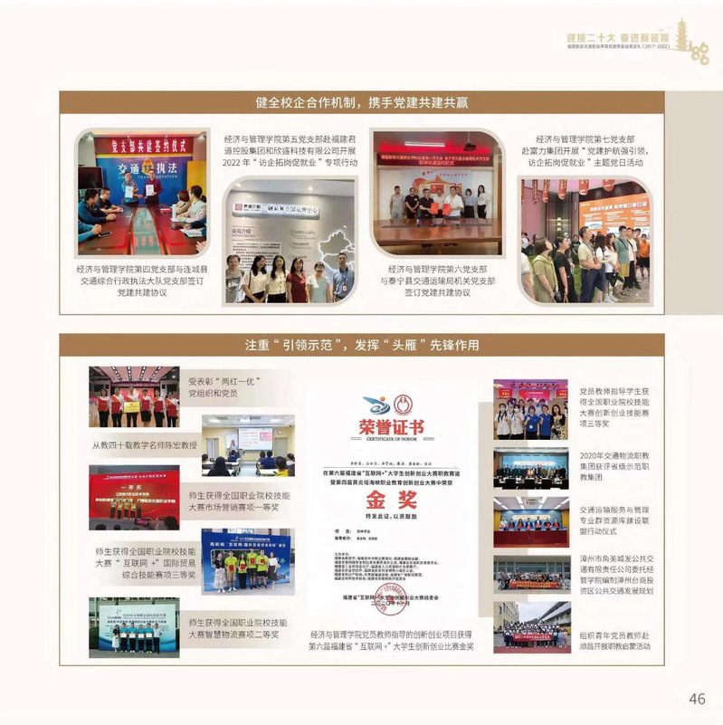 十九大以來(lái),福建船政交通職業(yè)學(xué)院堅(jiān)持以習(xí)近平新時(shí)代中國(guó)特色社會(huì)主義思想為指導(dǎo),堅(jiān)持社會(huì)主義辦學(xué)方向,深入貫徹黨的十九大和十九屆歷次全會(huì)精神,堅(jiān)守“為黨育人、為國(guó)育才”的初心和使命,慎終如始推進(jìn)學(xué)校黨的政治建設(shè)、思想建設(shè)、組織建設(shè)、作風(fēng)建設(shè)、紀(jì)律建設(shè)、制度建設(shè),黨的組織體系和學(xué)校治理體系相得益彰,黨建引領(lǐng)推動(dòng)創(chuàng)新船政、質(zhì)量船政、文化船政協(xié)奏齊鳴,政治生態(tài)、學(xué)術(shù)生態(tài)、文化生態(tài)持續(xù)向好,辦學(xué)效率、辦學(xué)效能、辦學(xué)效益顯著提升!