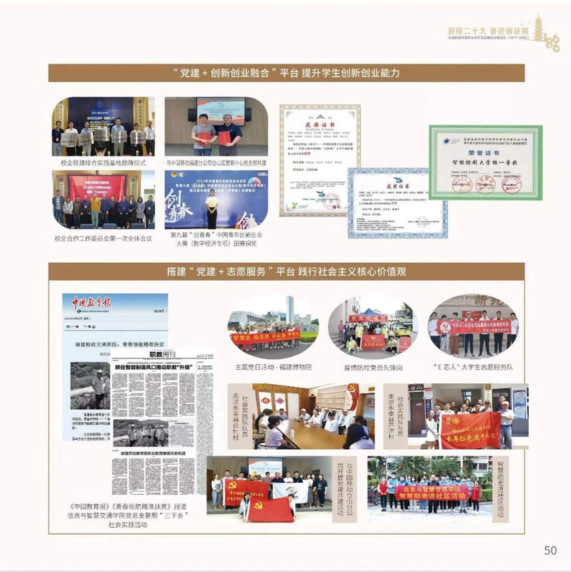 十九大以來,福建船政交通職業(yè)學(xué)院堅持以習(xí)近平新時代中國特色社會主義思想為指導(dǎo),堅持社會主義辦學(xué)方向,深入貫徹黨的十九大和十九屆歷次全會精神,堅守“為黨育人、為國育才”的初心和使命,慎終如始推進學(xué)校黨的政治建設(shè)、思想建設(shè)、組織建設(shè)、作風(fēng)建設(shè)、紀(jì)律建設(shè)、制度建設(shè),黨的組織體系和學(xué)校治理體系相得益彰,黨建引領(lǐng)推動創(chuàng)新船政、質(zhì)量船政、文化船政協(xié)奏齊鳴,政治生態(tài)、學(xué)術(shù)生態(tài)、文化生態(tài)持續(xù)向好,辦學(xué)效率、辦學(xué)效能、辦學(xué)效益顯著提升!