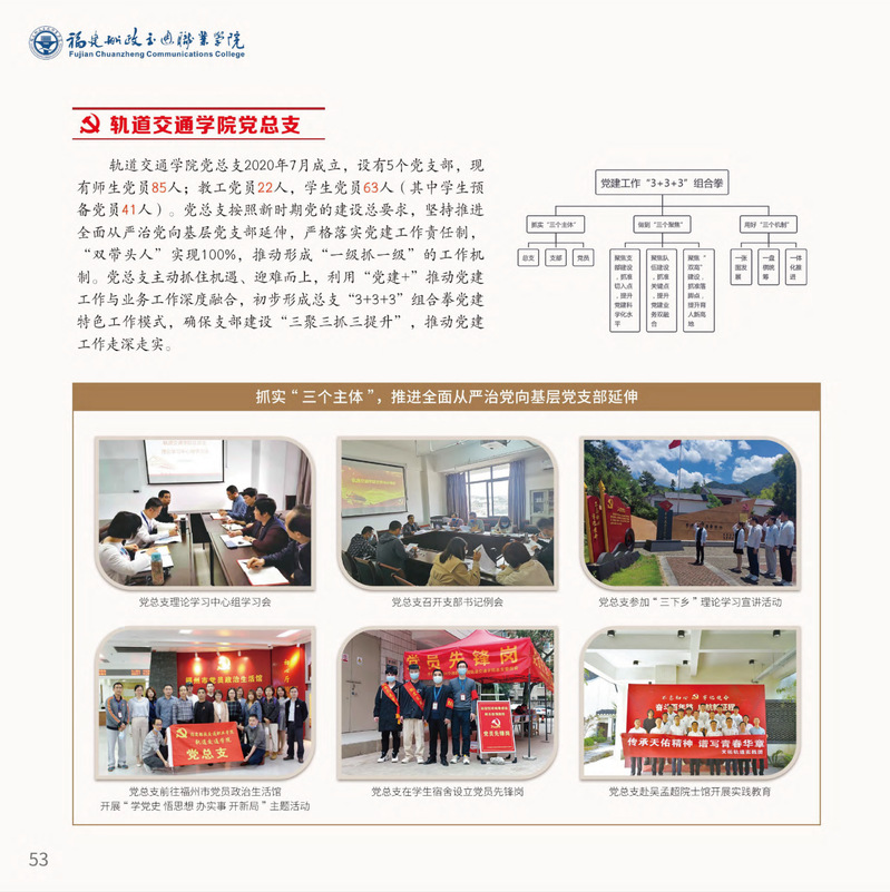 十九大以來,福建船政交通職業(yè)學(xué)院堅(jiān)持以習(xí)近平新時(shí)代中國特色社會主義思想為指導(dǎo),堅(jiān)持社會主義辦學(xué)方向,深入貫徹黨的十九大和十九屆歷次全會精神,堅(jiān)守“為黨育人、為國育才”的初心和使命,慎終如始推進(jìn)學(xué)校黨的政治建設(shè)、思想建設(shè)、組織建設(shè)、作風(fēng)建設(shè)、紀(jì)律建設(shè)、制度建設(shè),黨的組織體系和學(xué)校治理體系相得益彰,黨建引領(lǐng)推動創(chuàng)新船政、質(zhì)量船政、文化船政協(xié)奏齊鳴,政治生態(tài)、學(xué)術(shù)生態(tài)、文化生態(tài)持續(xù)向好,辦學(xué)效率、辦學(xué)效能、辦學(xué)效益顯著提升!
