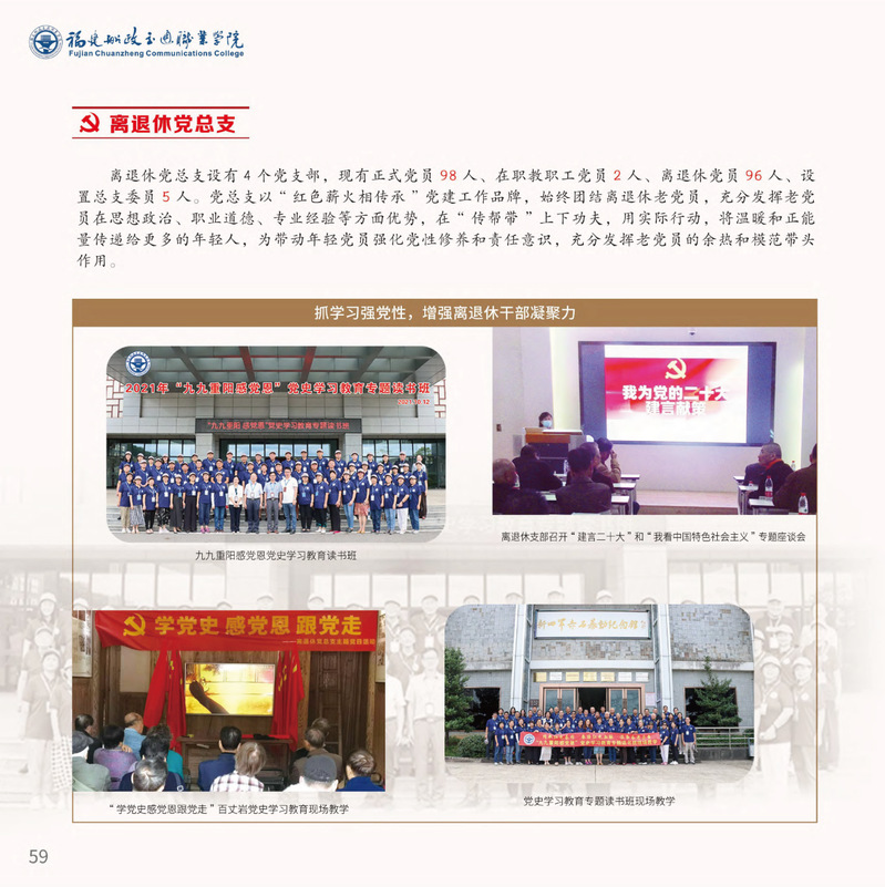 十九大以來,福建船政交通職業(yè)學院堅持以習近平新時代中國特色社會主義思想為指導,堅持社會主義辦學方向,深入貫徹黨的十九大和十九屆歷次全會精神,堅守“為黨育人、為國育才”的初心和使命,慎終如始推進學校黨的政治建設(shè)、思想建設(shè)、組織建設(shè)、作風建設(shè)、紀律建設(shè)、制度建設(shè),黨的組織體系和學校治理體系相得益彰,黨建引領(lǐng)推動創(chuàng)新船政、質(zhì)量船政、文化船政協(xié)奏齊鳴,政治生態(tài)、學術(shù)生態(tài)、文化生態(tài)持續(xù)向好,辦學效率、辦學效能、辦學效益顯著提升!