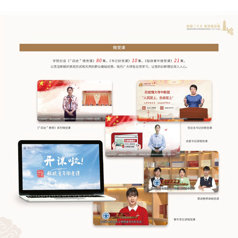 教育黨員有力 今年是黨的二十大召開之年,是學(xué)校深化綜合改革、加快“雙高”建設(shè)的關(guān)鍵年,是續(xù)寫過去5年工作、回首新時(shí)代10年變革的轉(zhuǎn)折年。站在新的歷史起點(diǎn)上,船政交通人將始終沿著習(xí)近平總書記親自為福建擘畫的最美山水圖、沿革船政先賢留下的文化瑰寶、延續(xù)一代代船政交通人接續(xù)奮斗的精神,以飽滿的精神、昂揚(yáng)的斗志、奮進(jìn)的狀態(tài),開啟建設(shè)中國特色高水平高職學(xué)校的新征程,以優(yōu)異成績(jī)慶祝黨的二十大勝利召開!