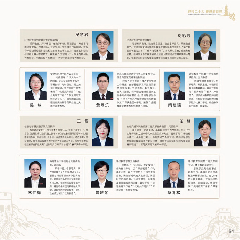 2022年是黨的二十大召開之年,是學校深化綜合改革、加快“雙高”建設的關鍵年,是續(xù)寫過去5年工作、回首新時代10年變革的轉折年。站在新的歷史起點上,船政交通人將始終沿著習近平總書記親自為福建擘畫的最美山水圖、沿革船政先賢留下的文化瑰寶、延續(xù)一代代船政交通人接續(xù)奮斗的精神,以飽滿的精神、昂揚的斗志、奮進的狀態(tài),開啟建設中國特色高水平高職學校的新征程,以優(yōu)異成績慶祝黨的二十大勝利召開!