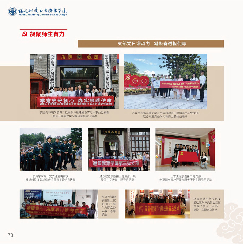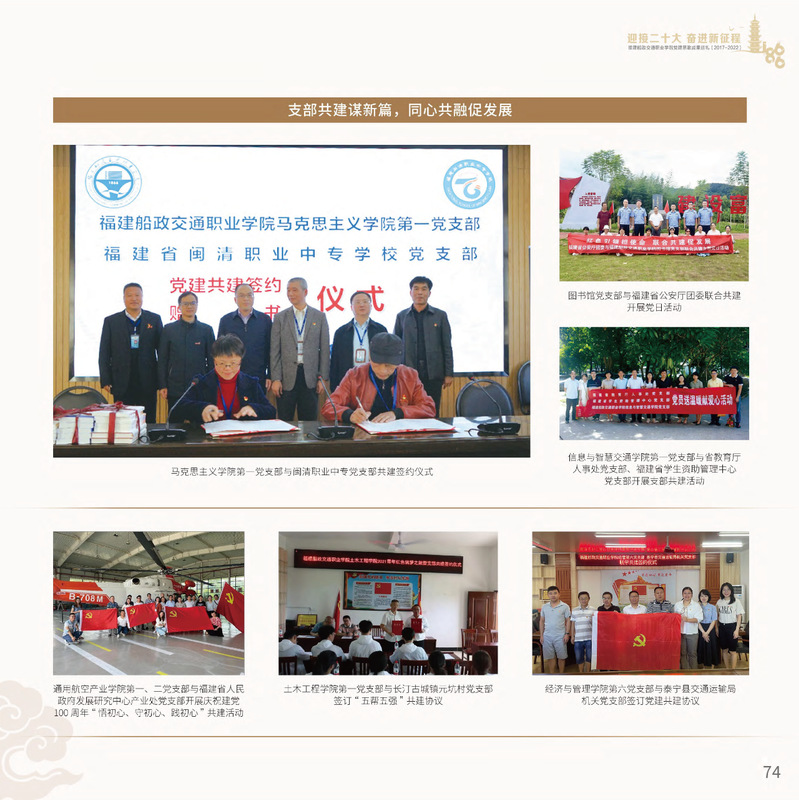 十九大以來(lái),福建船政交通職業(yè)學(xué)院堅(jiān)持以習(xí)近平新時(shí)代中國(guó)特色社會(huì)主義思想為指導(dǎo),堅(jiān)持社會(huì)主義辦學(xué)方向,深入貫徹黨的十九大和十九屆歷次全會(huì)精神,堅(jiān)守“為黨育人、為國(guó)育才”的初心和使命,慎終如始推進(jìn)學(xué)校黨的政治建設(shè)、思想建設(shè)、組織建設(shè)、作風(fēng)建設(shè)、紀(jì)律建設(shè)、制度建設(shè),黨的組織體系和學(xué)校治理體系相得益彰,黨建引領(lǐng)推動(dòng)創(chuàng)新船政、質(zhì)量船政、文化船政協(xié)奏齊鳴,政治生態(tài)、學(xué)術(shù)生態(tài)、文化生態(tài)持續(xù)向好,辦學(xué)效率、辦學(xué)效能、辦學(xué)效益顯著提升! 近期,學(xué)校官微將陸續(xù)推出“學(xué)校黨建思政成果巡禮(2017-2022)”專題系列,邀請(qǐng)您共同回顧學(xué)校過(guò)去五年黨建思政工作的發(fā)展歷程。 凝聚師生有力