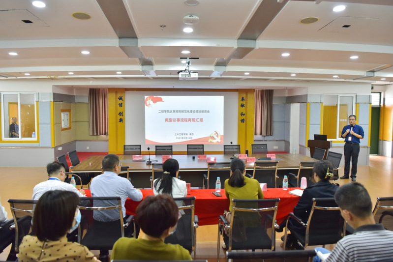 下午,在土木工程學(xué)院召開了現(xiàn)場推進(jìn)會(huì),校領(lǐng)導(dǎo)、相關(guān)職能部門、二級(jí)學(xué)院班子全體成員參會(huì)。現(xiàn)場推進(jìn)會(huì)上,土木工程學(xué)院黨總支書記高杰就黨總支會(huì)議、黨政聯(lián)席會(huì)議召開情況向與會(huì)人員做了匯報(bào),隨后,大家一同觀摩了土木工程學(xué)院黨總支會(huì)議、黨政聯(lián)席會(huì)議現(xiàn)場會(huì)。