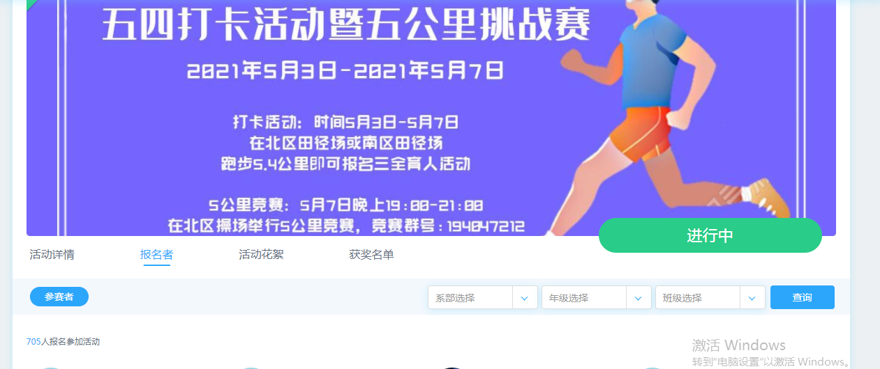 同時為了展現五四青年節(jié)的青年精神。特此發(fā)起了這次五四打卡活動暨五公里挑戰(zhàn)賽奔跑活動。