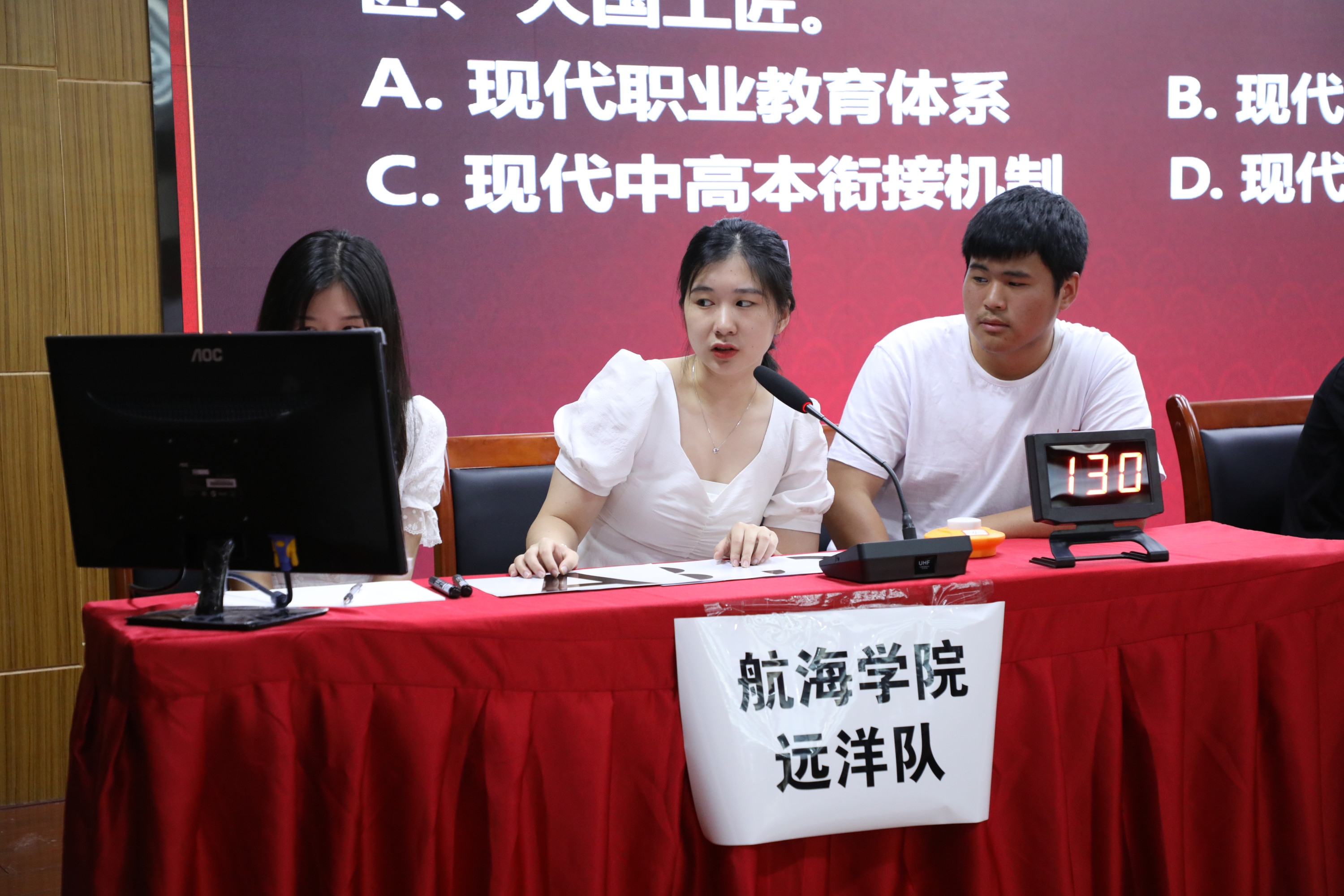 比賽環(huán)節(jié)環(huán)環(huán)相扣,激動(dòng)人心。第二環(huán)節(jié)的搶答比拼更加激烈,航海學(xué)院一路領(lǐng)先,軌道交通學(xué)院保持第二,汽車學(xué)院一路趕超,最后一刻與軌道交通學(xué)院比分持平。在卷軸加時(shí)環(huán)節(jié)汽車學(xué)院反超軌道學(xué)院進(jìn)入爭(zhēng)霸賽。