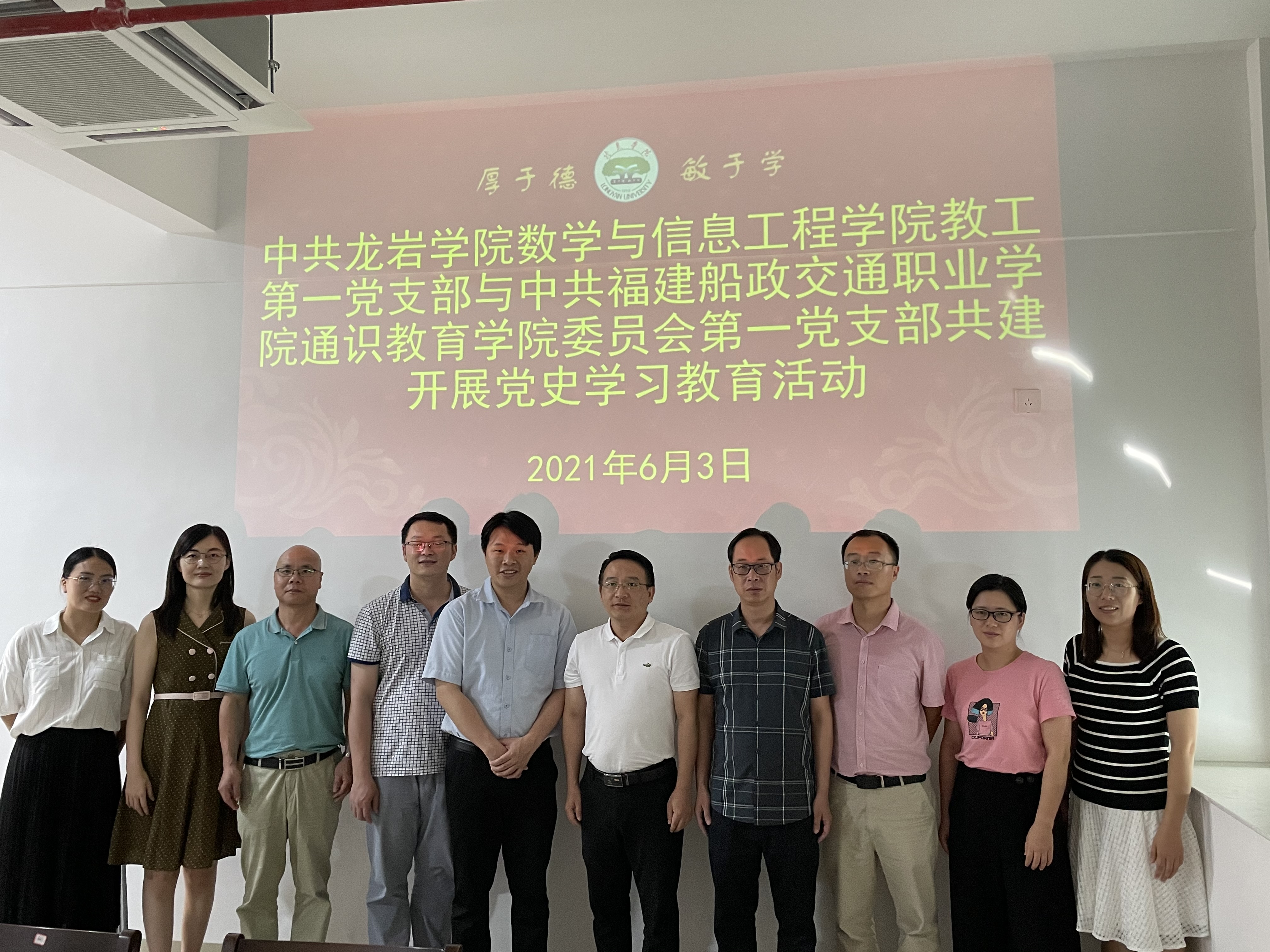 6月3日,在龍巖學(xué)院數(shù)學(xué)與信息工程學(xué)院(簡稱:龍院數(shù)信學(xué)院),龍院數(shù)信學(xué)院謝錦山副院長介紹了數(shù)信學(xué)院發(fā)展現(xiàn)狀,數(shù)信學(xué)院數(shù)學(xué)與應(yīng)用數(shù)學(xué)(師范)專業(yè)系主任沈壽華向來賓具體介紹了公共數(shù)學(xué)教研室工作開展情況,分享了課時安排、分層教學(xué)及教材選用、考查方式等經(jīng)驗(yàn)。雙方就高等數(shù)學(xué)課程教學(xué)等方面進(jìn)行了深入研討,一致認(rèn)為高等數(shù)學(xué)是理工科的核心課程,雙方應(yīng)加強(qiáng)學(xué)習(xí)、借鑒。同時龍院數(shù)信學(xué)院與我院總支第一黨支部共建開展黨史學(xué)習(xí)教育交流。