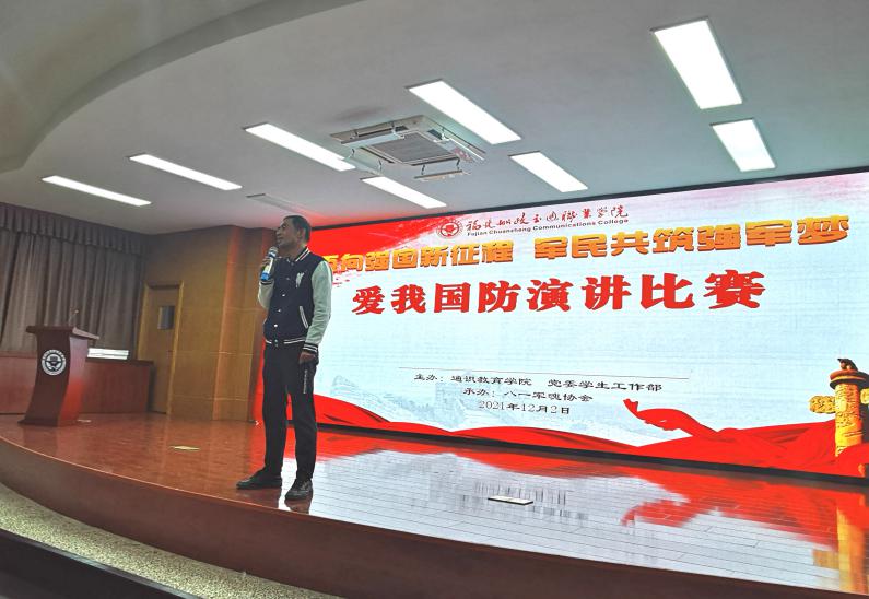 12月2日晚,由通識教育學(xué)院和黨委學(xué)生工作部主辦,八一軍魂社協(xié)辦的2021年“愛我國防”主題演講比賽在1號樓學(xué)術(shù)報(bào)告廳舉行。黨委學(xué)生工作部部長王心金、紀(jì)委辦公室副主任林栩、學(xué)生處資助科科長張瑞青、各系部團(tuán)總支負(fù)責(zé)人、軍事理論教研室老師、通識教育學(xué)院部分老師和300多個(gè)學(xué)生共同觀看了比賽。