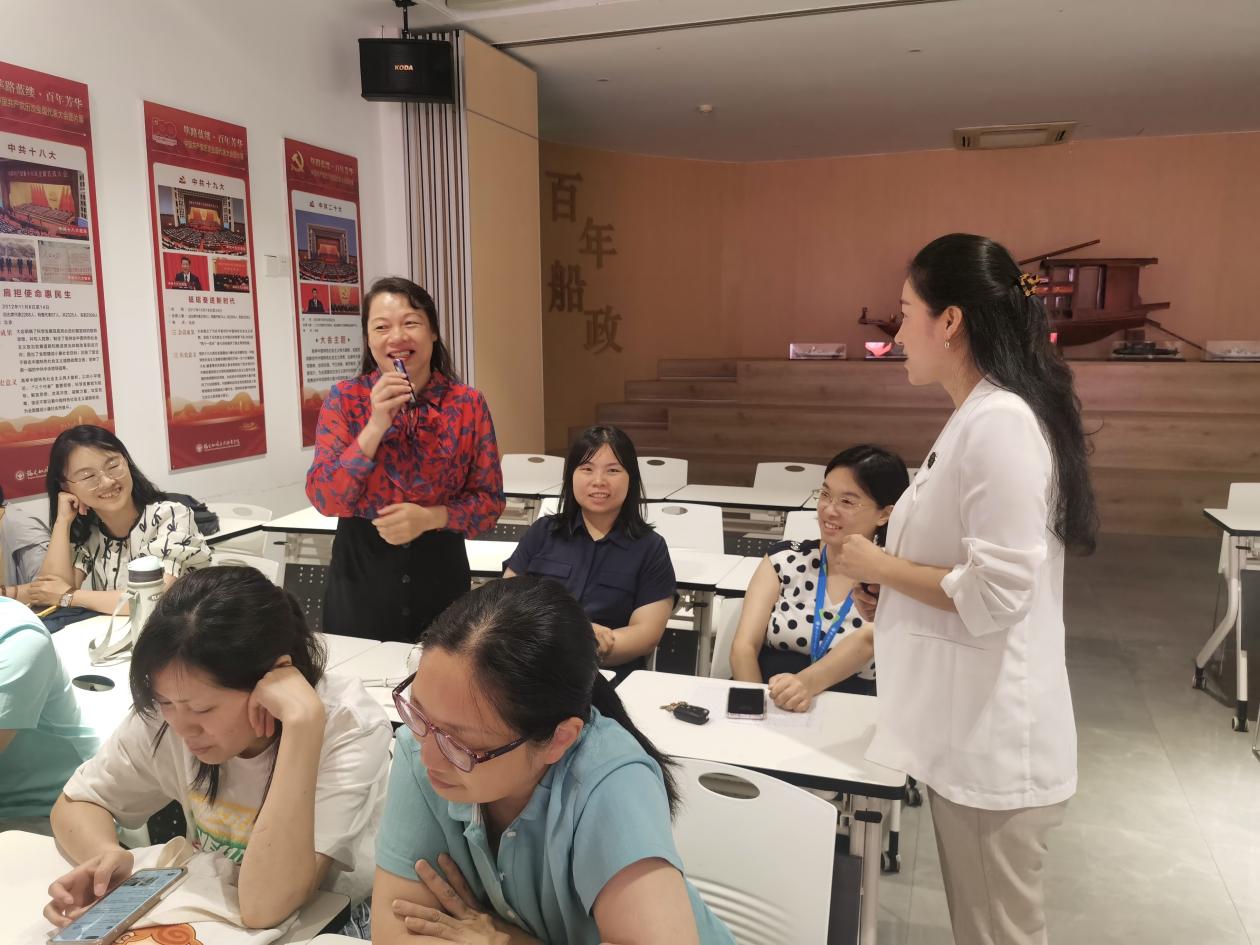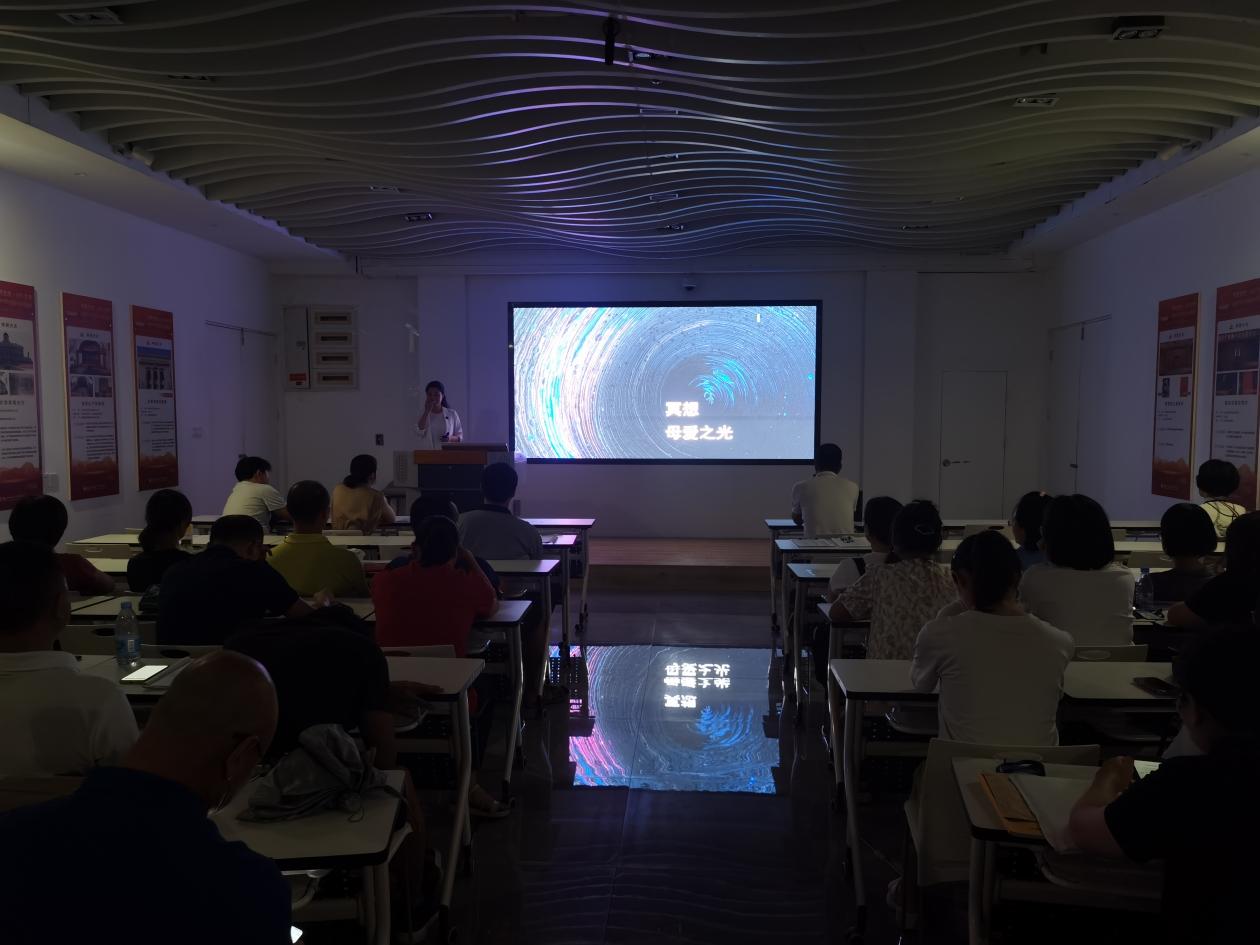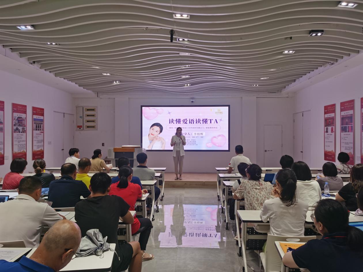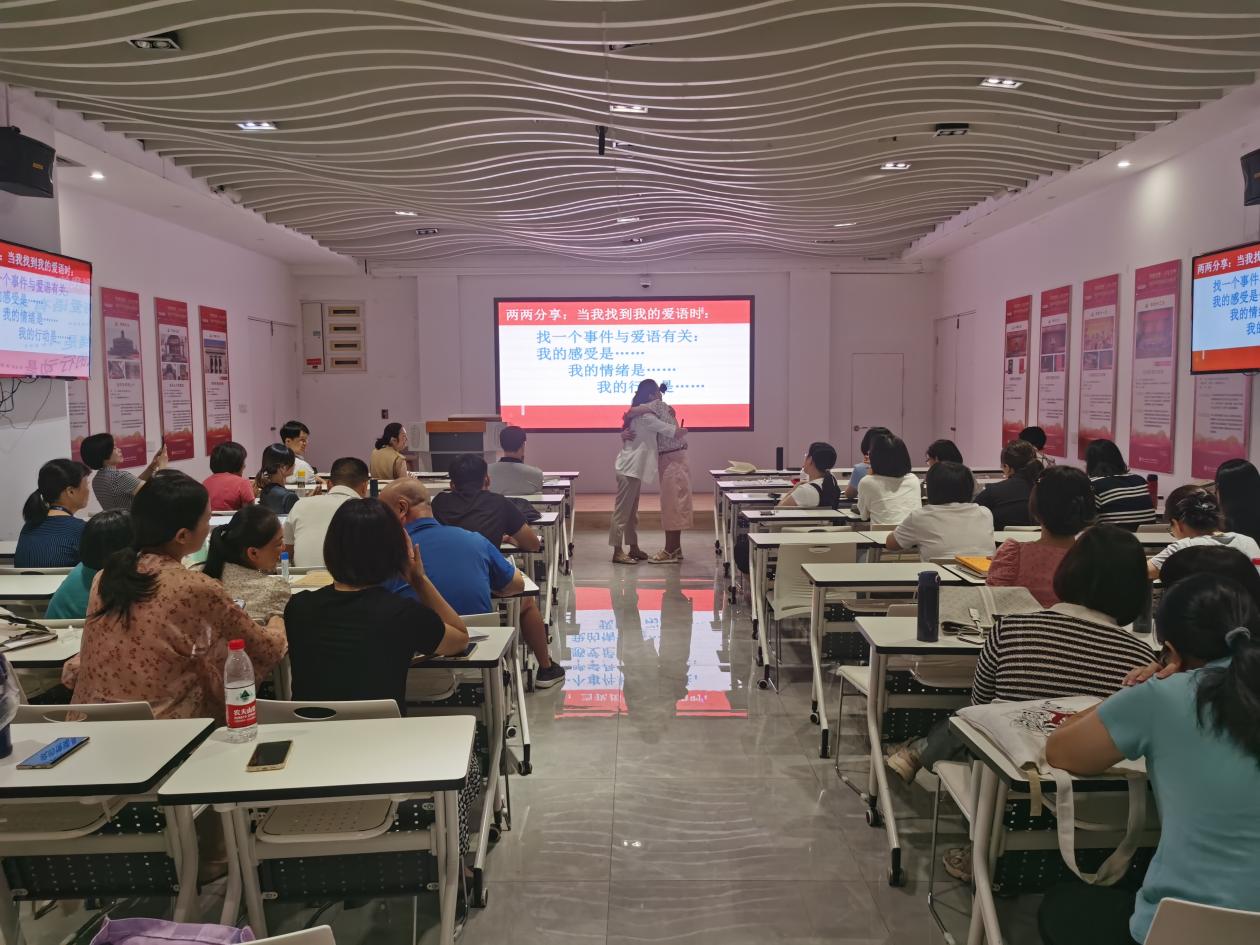 課上,李榕輝老師從教師心理健康出發(fā),結(jié)合生動的案例和自身經(jīng)歷,介紹家庭親子溝通的重要性、意義和途徑,重點闡述了肯定的言詞、精心的時刻、接受禮物、服務(wù)的行動和身體的接觸等“愛的五種語言”,以及具體表達方式?,F(xiàn)場氣氛活躍,李榕輝開展多次互動游戲、測試、冥想母愛之光等活動,有效教師們打開良好溝通之門,提高與家人溝通的質(zhì)量。老師們紛紛表示,培訓(xùn)課氛圍感好,實用性強,工作離不開家庭,離不開良好的親子關(guān)系,從培訓(xùn)課中學(xué)會了實用親子表達溝通的方式和技巧。