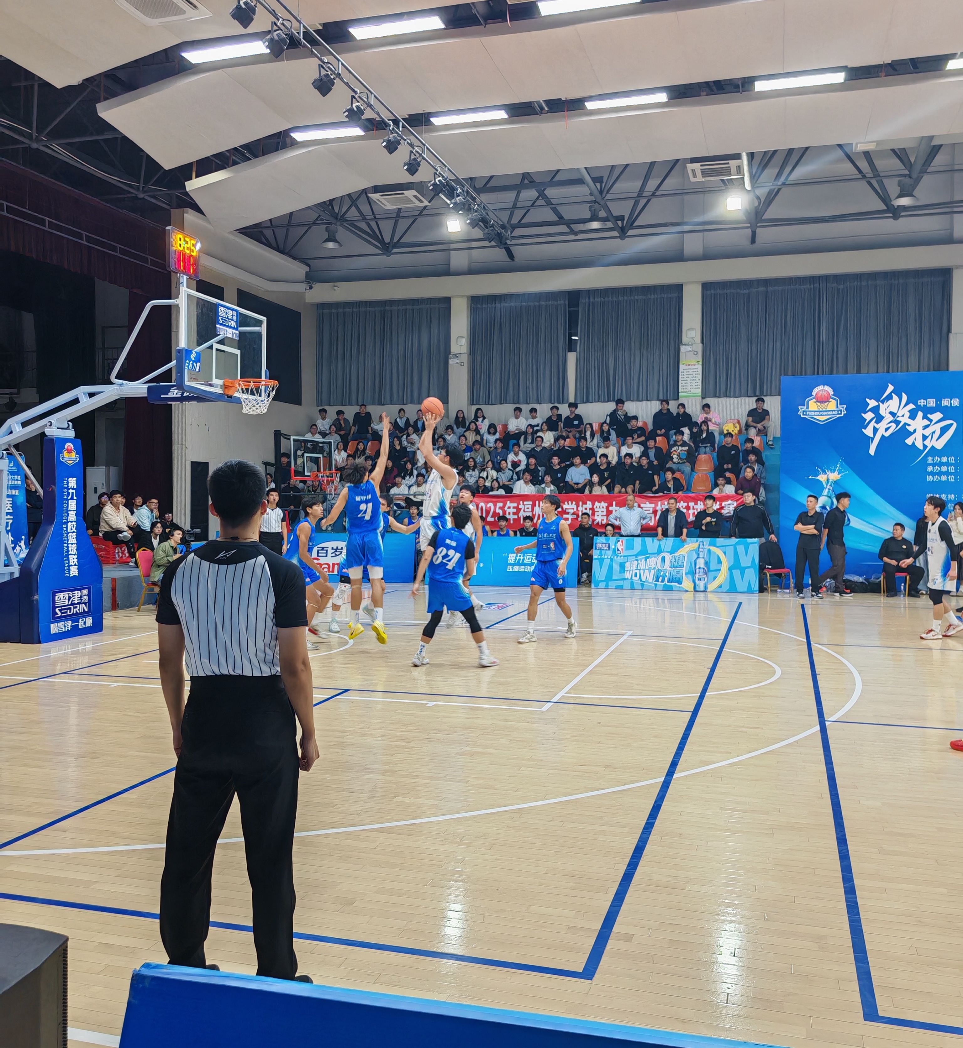11月24日晚,2025年福州大學(xué)城第九屆高校籃球聯(lián)賽在我院文體中心籃球場落下帷幕。經(jīng)過激烈角逐,我院籃球隊在總決賽(第二回合)以一分之差惜敗福建理工大學(xué),榮獲本屆聯(lián)賽亞軍。