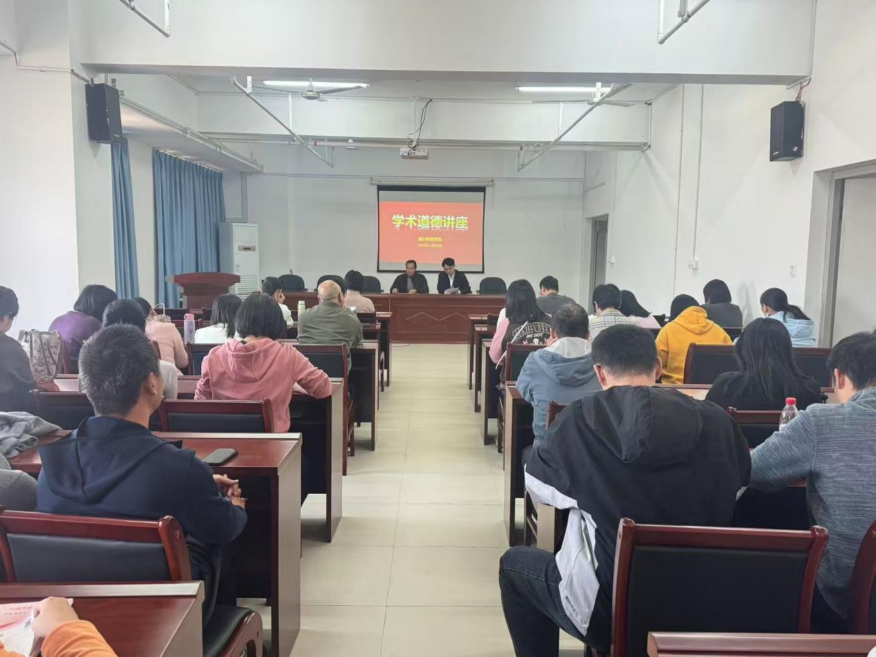 講座伊始,陳火城書記首先帶領(lǐng)全體教師重溫了《新時代高校教師職業(yè)行為十項準(zhǔn)則》,強(qiáng)調(diào)了堅守學(xué)術(shù)道德、維護(hù)學(xué)術(shù)尊嚴(yán)是高校教師的基本職業(yè)操守和神圣職責(zé)。他結(jié)合當(dāng)前學(xué)術(shù)界的形勢與政策,深刻闡述了加強(qiáng)學(xué)術(shù)道德建設(shè)的緊迫性與重要性,指出優(yōu)良的學(xué)風(fēng)是學(xué)院發(fā)展的生命線,每一位教師都應(yīng)成為學(xué)術(shù)誠信的踐行者和守護(hù)者。