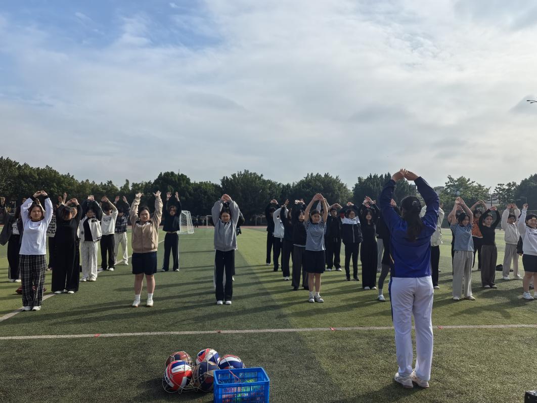 分享會(huì)后,在學(xué)院福道園青春田徑場(chǎng),黃芊芊從系統(tǒng)的動(dòng)態(tài)拉伸到科學(xué)的熱身流程,她親自示范,細(xì)致講解每一個(gè)動(dòng)作的要點(diǎn)與保護(hù)原理。同學(xué)們緊跟冠軍穩(wěn)健的節(jié)奏,眼神專注,親身領(lǐng)悟著競(jìng)技體育中那份獨(dú)特的嚴(yán)謹(jǐn)之美與活力之源。