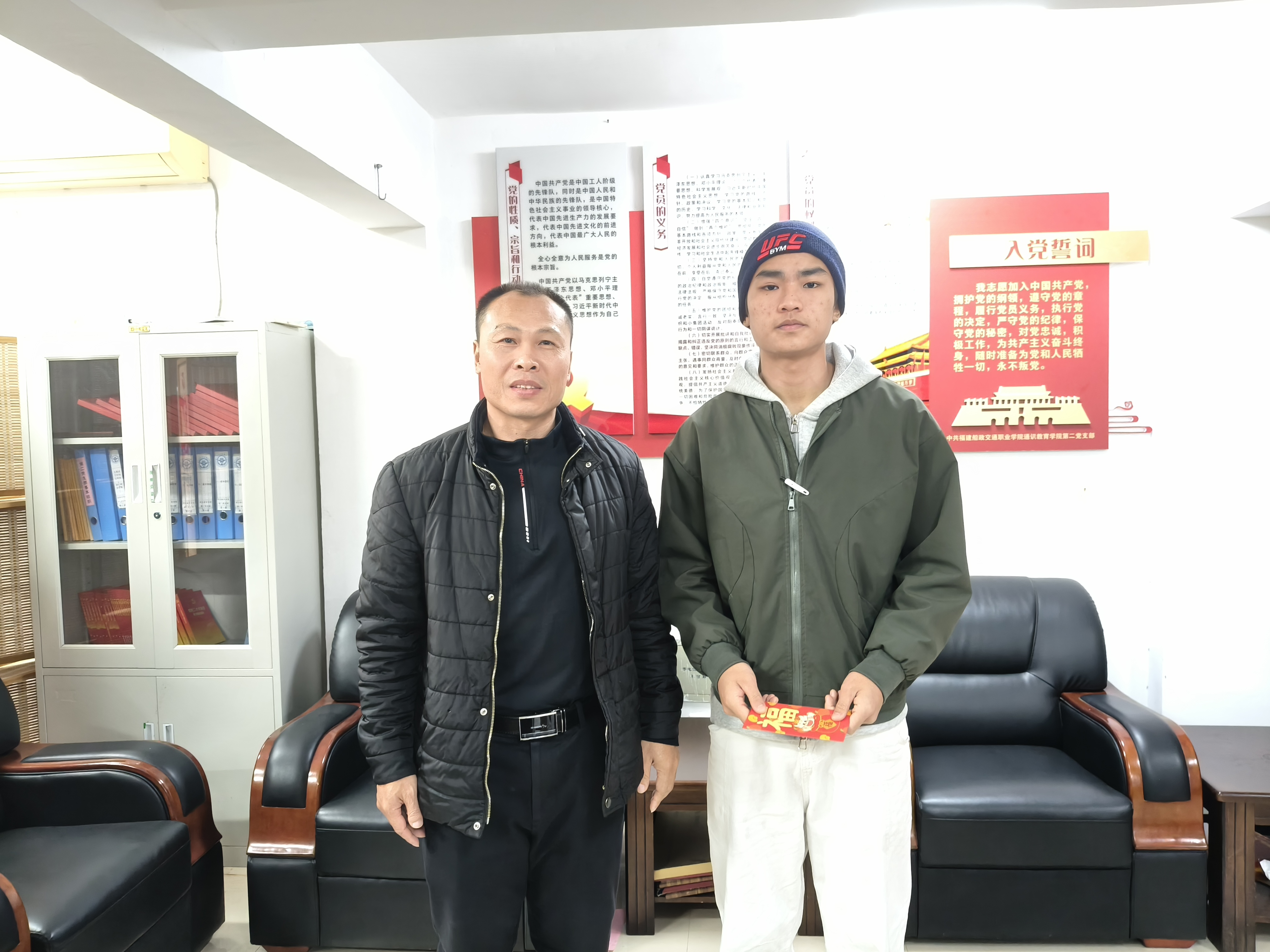 通識教育學(xué)院第二黨支部書記親自將助學(xué)金和慰問品送到受助學(xué)生航海學(xué)院2025級輪機工程技術(shù)2班魏強偉學(xué)生手中。