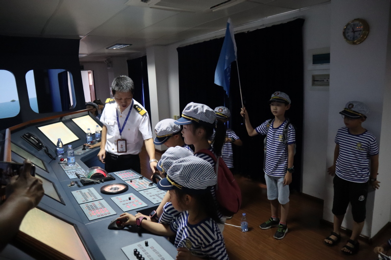 身穿?;晟?、頭帶水手帽,精氣神十足的小朋友們參加了開班儀式,陳宜大副書記致開幕詞,并為夏令營授旗。辦公室主任余友輝、航海系主任江明光、輪機系主任陳清彬、福建省曙光救援中心副總隊長楊榕生以及部分教職工出席了開班儀式,工會常務副主席王麗敏主持活動儀式。