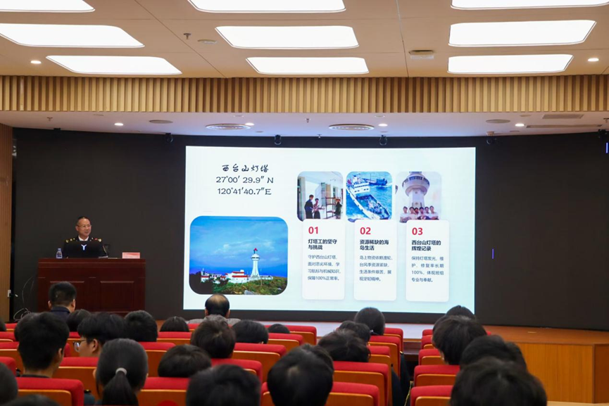 互動環(huán)節(jié)結(jié)束后,福州航標(biāo)處馮振剛老師從航海專業(yè)的角度用形象生動的案例向在場觀眾詳細(xì)介紹了航標(biāo)處的運(yùn)作情況。他指出要把在課堂上學(xué)到的理論與實(shí)際相結(jié)合,要大力弘揚(yáng)勞模精神、勞動精神、工匠精神,不斷提升自身技術(shù)技能水平,以適應(yīng)科技革命和產(chǎn)業(yè)變革的需要,為實(shí)現(xiàn)中華民族偉大復(fù)興的中國夢貢獻(xiàn)自己的青春力量。