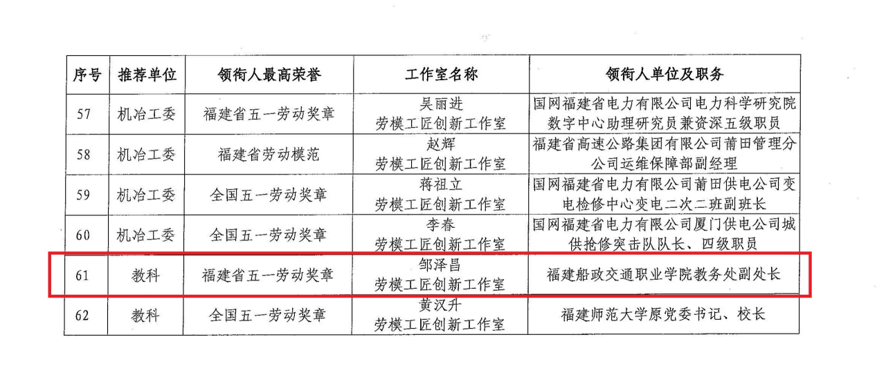 日前,福建省總工會公布了《關(guān)于確認(rèn)福建省勞模工匠創(chuàng)新工作室的通知》,我院鄒澤昌副教授領(lǐng)銜的市級勞模和工匠人才創(chuàng)新工作室成功獲批“福建省勞模工匠創(chuàng)新工作室”,這是我院首個(gè)福建省勞模工匠創(chuàng)新工作室。