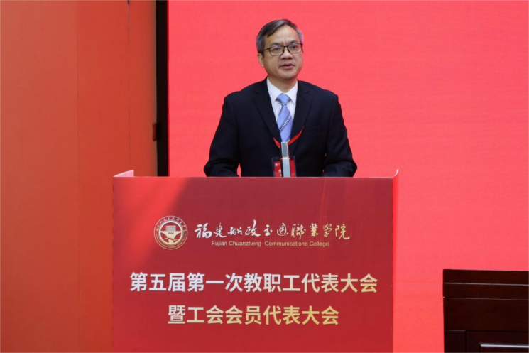 學(xué)院黨委副書記、院長(zhǎng)陳錦輝做學(xué)院工作報(bào)告。他在報(bào)告中回顧了學(xué)院過去六年的主要工作和取得的成績(jī),指出了當(dāng)前學(xué)院發(fā)展面臨的新形勢(shì)和新要求,明確了2025年學(xué)院主要工作和發(fā)展目標(biāo),重點(diǎn)部署了以下五個(gè)方面的工作:一是堅(jiān)持黨建引領(lǐng),把好辦學(xué)治校政治方向;二是堅(jiān)持立德樹人,深化人才培養(yǎng)質(zhì)量工程;三是堅(jiān)持科教融匯,提升服務(wù)經(jīng)濟(jì)社會(huì)發(fā)展能力;四是深化交流合作,打造船政交通文化品牌;五是對(duì)標(biāo)人民滿意,提升關(guān)鍵辦學(xué)能力。希望全體教職員工努力搶抓機(jī)遇,勇毅前行,不斷開創(chuàng)學(xué)院事業(yè)發(fā)展新局面,為奮力譜寫中國式現(xiàn)代化福建篇章,建成教育強(qiáng)省、交通強(qiáng)國先行區(qū)作出新的貢獻(xiàn)。