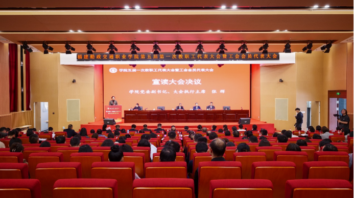 3月13日上午,福建船政交通職業(yè)學(xué)院第五屆第一次教職工代表大會(huì)暨工會(huì)會(huì)員代表大會(huì)在福船園藝新樓331報(bào)告廳順利舉行。本次會(huì)議是在學(xué)院深入學(xué)習(xí)宣傳貫徹全國“兩會(huì)”精神和全國、全省教育大會(huì)精神,“十四五”規(guī)劃全面收官、“十五五”規(guī)劃謀篇布局,學(xué)院申創(chuàng)第二期“雙高計(jì)劃”建設(shè)和深化綜合改革的關(guān)鍵時(shí)期召開的一次重要會(huì)議。福建省教科文衛(wèi)體工會(huì)工委主任郭立新、副主任陽先輝,學(xué)院黨委書記陳宜大,黨委副書記、院長(zhǎng)陳錦輝,黨委副書記張輝,黨委委員、副院長(zhǎng)陳艷紅,副院長(zhǎng)陳常暉出席會(huì)議,正式代表、列席代表共200多人參加會(huì)議。會(huì)議由學(xué)院黨委委員、副院長(zhǎng)陳艷紅主持。