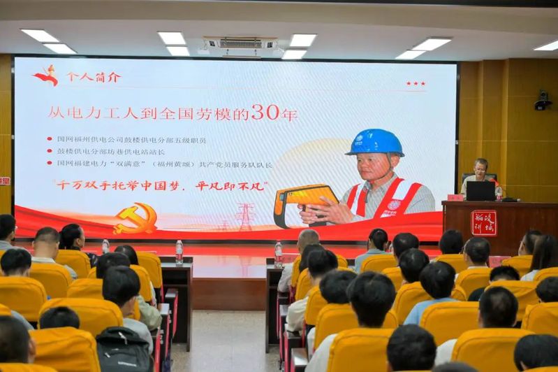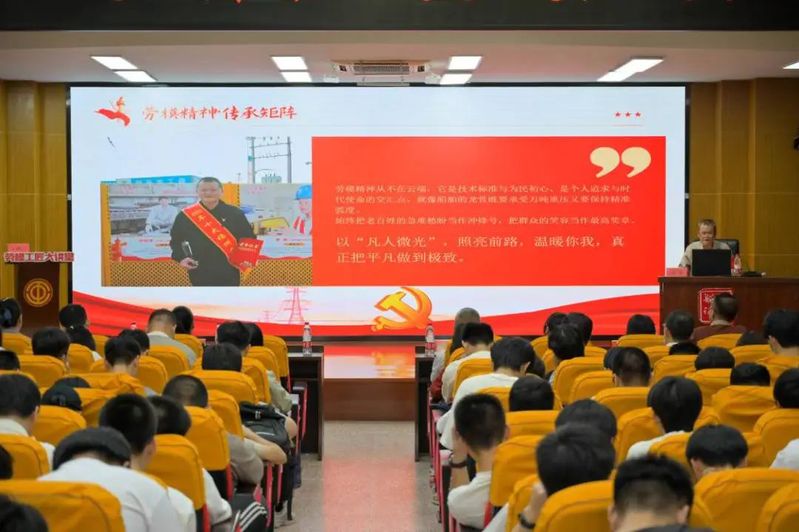講座中,黃站長以質(zhì)樸語言講述30年電力一線堅守故事:暴雨夜蹚水搶修、臺風(fēng)天獲市民撐傘,從老一輩職工步行交接班的勞動精神啟蒙,到帶領(lǐng)團(tuán)隊攻克“龍王”臺風(fēng)136萬戶搶修難題。他結(jié)合工作室 “四融四帶四庫”體系,分享“刀片環(huán)削法”等創(chuàng)新成果及榜樣傳承力量,詮釋“0.01毫米級”工匠精神的專注與嚴(yán)謹(jǐn)。最后,他以“崗位是時代錨點(diǎn)”勉勵師生,將工匠精神融入日常,在平凡中錨定不凡坐標(biāo),以匠心點(diǎn)亮奮斗之路,為中國制造添磚加瓦。