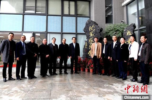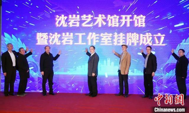 著名藝術家沈巖(右三)與來賓共同為沈巖藝術館開館暨沈巖工作室掛牌成立啟幕。