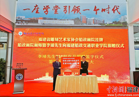 12月22日,時(shí)值福建船政交通職業(yè)學(xué)院成立153年紀(jì)念日前夕,福建省雕刻藝術(shù)家協(xié)會(huì)船政畫院在有著悠久歷史的福建船政交通職業(yè)學(xué)院正式掛牌成立,社會(huì)各界群眾200余人參加活動(dòng)。