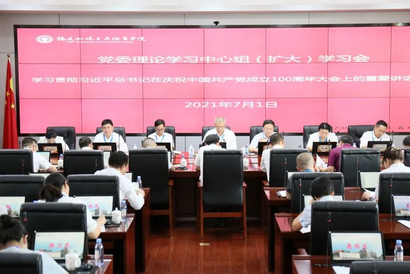 7月1日下午,學院黨委書記張海明主持召開黨委理論學習中心組(擴大)專題學習會,認真學習習近平總書記在慶祝中國共產黨成立100周年大會上的重要講話精神,開展集中學習研討,部署貫徹落實措施。院黨委副書記、院長陳錦輝,黨委副書記陳宜大,黨委委員、紀委書記張輝,黨委委員、副院長高汝武,張祖柱,陳艷紅參加學習會。
