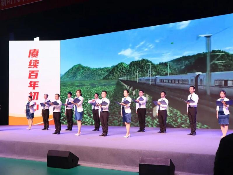 中場(chǎng),我院軌道交通學(xué)院的教職工們?yōu)楝F(xiàn)場(chǎng)觀眾們準(zhǔn)備了朗誦節(jié)目《交通軌道新生活》,老師們激情澎湃地歌頌新時(shí)代職業(yè)風(fēng)采,暢想職業(yè)教育未來。