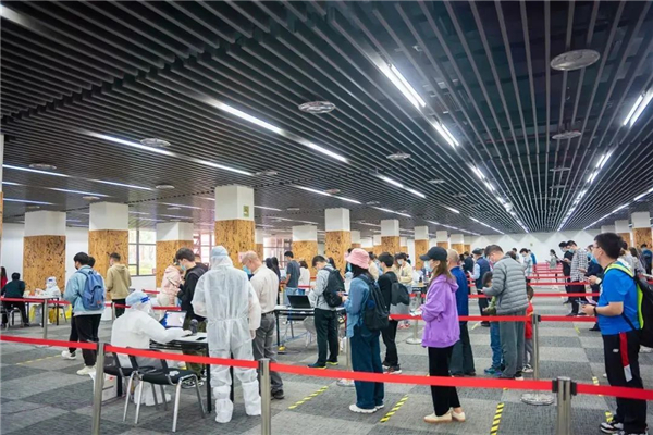 3月15日晚上10時,按照應(yīng)測盡測原則福建船政交通職業(yè)學(xué)院總計1.55萬多人在學(xué)校完成核酸檢測。為更好進行核酸采集工作,學(xué)院于檢測場地內(nèi)設(shè)立防疫通道,設(shè)置一米安全距離,保證進出兩道暢通,無交叉風險。所有待采樣人員要求佩戴口罩。取得采集碼后有序進入采樣區(qū),由醫(yī)護人員進行采樣,采樣過程迅速,現(xiàn)場效率高。