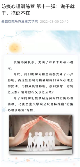 學(xué)院開設(shè)公眾號抗疫心理專欄