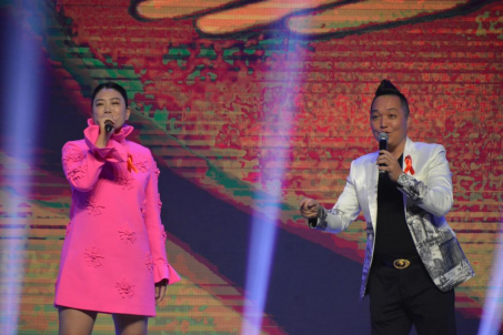福州本土主持人土豆,與他的妻子豆嫂帶來(lái)了歌曲《與艾揮揮手》,淺顯易懂的歌詞,提高大家艾滋病的自我防范意識(shí)。