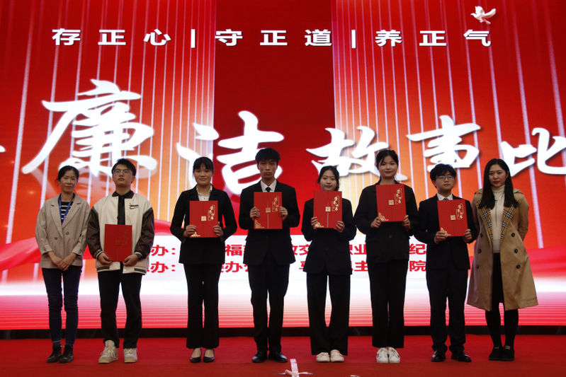 “他是‘立品當如山有岳,持身要比玉無瑕’的清廉官員左宗棠?!薄敖乖5撈鸩荨刹?0不準’是對特權思想的批評,是對‘權力任性’的約束。”“廉潔從教,鑄魂育人。三尺講臺,擔起的是育人之責;支支粉筆,書寫的是師者風范?!薄?4位教師演講者先后上臺,圍繞弘揚廉潔精神,講述中國特色的廉潔故事;回溯百年黨史,講述恪守為民的廉潔故事;聚焦船政校史,講述校園廉潔文化建設的故事。他們以自信大方的臺風、聲情并茂的演講、真摯動人的情感贏得現場陣陣掌聲。
